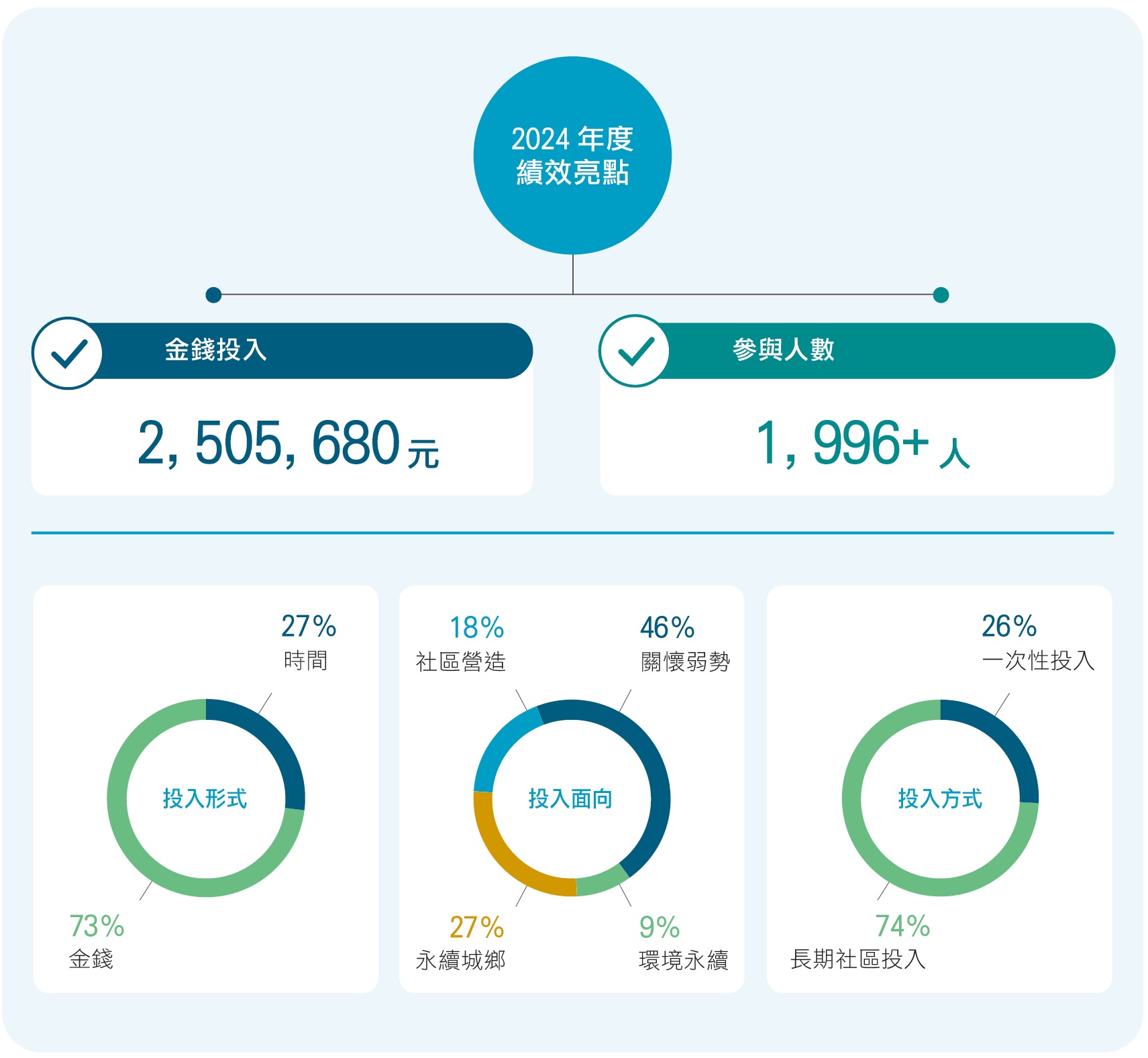 | 投入金額:2024 年投入總金額為2,505,680 元。 | ||||||